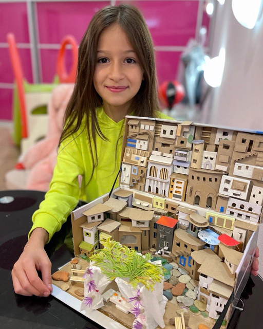Работа Рады покоряет своей неординарностью, фантазией, безукоризненным самостоятельным исполнением. В разработку технически сложной идеи вложено много труда. Рада не просто построила макет сукки, — она изобразила целый город по мотивам Иерусалимских склонов, поместив таким образом сукку в контекст истории и традиций, и добавила рассказ о том, как вся семья продолжила отмечать праздник в сукке несмотря на дождь, подчеркнув тем самым важность и святость традиции, объединяющей наш народ веками.